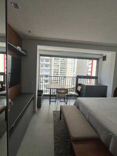 Studio mobiliado ao lado do Shopping Ibirapuera – Moema Studio semi-mobiliado, com projeto moderno e excelente aproveitamento de espaço, localizado em Moema, ao lado do Shopping Ibirapuera, em uma das regiões mais valorizadas e completas da cidade. O imóvel conta com ambientes integrados e bem distribuídos, com sala equipada com sofá, bancada funcional e armários planejados. A cozinha possui marcenaria sob medida, oferecendo praticidade e organização. O dormitório é confortável, com cama, armários planejados, ótima iluminação natural e cortinas que garantem privacidade. O banheiro apresenta acabamento contemporâneo, com revestimentos atuais e box em vidro. O condomínio oferece lazer completo na cobertura, com piscina, sauna e academia, proporcionando conforto e qualidade de vida. O apartamento dispõe ainda de 1 vaga de garagem coberta. A localização é um grande diferencial: a poucos passos do Shopping Ibirapuera, próximo ao Hospital Moriah, às estações Eucaliptos e Moema do metrô, ao DeRose Method Moema e ao CONSA – Colégio Franciscano Nossa Senhora Aparecida, garantindo praticidade, mobilidade e conveniência no dia a dia. Pronto para morar. Agende sua visita com a CRISTIANA MELO IMÓVEIS!!