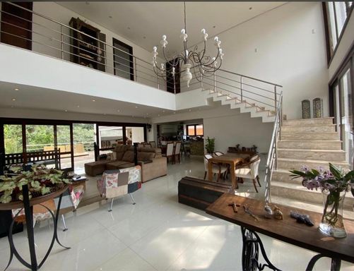 Lindíssima casa com hall de entrada, escritório, lavabo, sala 2 ambientes, sala de jantar, sala de lareira e tv, 4 suites com planejados ( sendo 2 com varanda e banheira, Suite Master com closet e vista maravilhosa para a Reserva. Acabamentos em mármore travertino nacional. Cozinha rica em armários, ampla área de serviço, suite de empregada, depósito, sauna seca, ateliê, 3 banheiros (sendo 1 independente para atender a área externa), amplo espaço gourmet com churraqueira a carvão e forno de pizza, sala com opções de uso para academia, sala de leitura biblioteca , adega, entre outras escolhas. 2 entradas laterias , sistema de aquecimento solar, piscina com cascata e 8 vagas de garagem. Ótima localização,com acesso pelo km 26,5, sentido Cotia, é considerado um dos maiores condomínios da Granja Viana e com certeza. Dividido em algumas áreas como Recanto Nobre, Granja Ville, Carmel, Reserva SP2 e Reserva Especial SP2. Possui área de lazer completa com clube, diversos parques infantis, bosques e mata preservada. O clube oferece: 6 quadras de tênis, pista de skate, quadras poliesportivas, 2 campos de futebol 01 ginásio poliesportivo, 02 campos de futebol society, sala de ginástica, quadra de futevôlei, quadra de beach tênis e quiosques. Segurança 24 horas, portaria, rígido controle de acesso, ronda interna e externa e segurança também na via de acesso da chegada ao condomínio. Grande oportunidade Venha conhecer seu novo lar