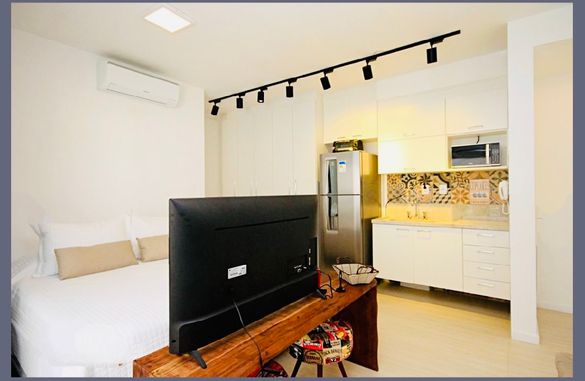 Com sala integrada à varanda, cozinha planejada e banheiro moderno, o apartamento já está totalmente mobiliado e equipado: