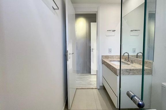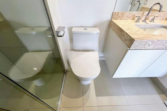 A varanda é um dos grandes diferenciais do apartamento, oferecendo um espaço agradável para relaxar, apreciar a vista ou criar um cantinho especial para momentos de descanso após a rotina agitada da cidade.