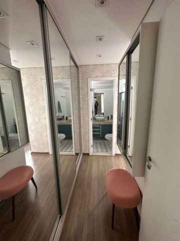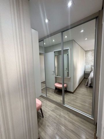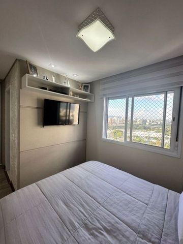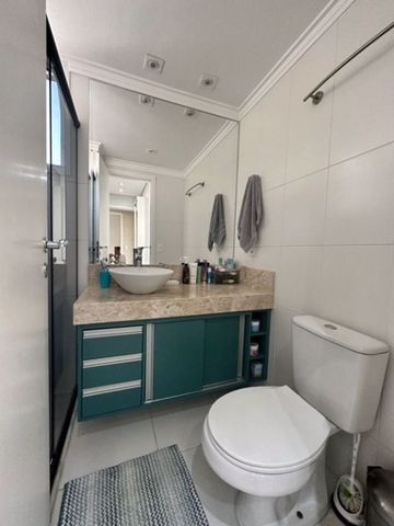 Pensado para oferecer bem-estar, o imóvel apresenta ambientes integrados e funcionais. A sala para dois ambientes se conecta à varanda gourmet, já fechada com vidro e equipada com tela de proteção, criando um espaço versátil para lazer e refeições. O piso em porcelanato polido nivelado traz elegância e continuidade visual, enquanto os dormitórios com armários planejados e piso laminado garantem conforto e organização. A suíte principal, com closet de portas espelhadas, se destaca pela modernidade, e os banheiros, com acabamentos de qualidade, box de vidro, pias com armários e espelhos amplos, reforçam a sensação de praticidade. A lavanderia bem ventilada complementa o ambiente, tornando a rotina ainda mais funcional. Além disso, o condomínio oferece uma ampla infraestrutura de lazer, com piscina, churrasqueira, quadra esportiva, academia, salões de festas e jogos, brinquedoteca, playground, sauna e áreas verdes que promovem convivência e tranquilidade em meio ao cenário urbano.