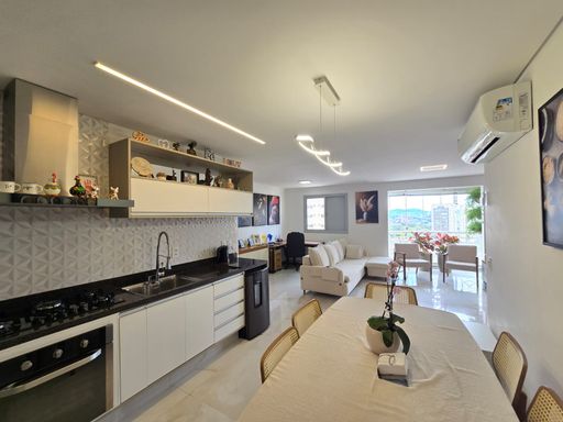 A sacada ampliada proporciona maior amplitude à sala, criando um ambiente acolhedor, ideal para receber amigos e familiares. O imóvel recebe sol da tarde, tornando os ambientes mais agradáveis e aconchegantes. Localizado em andar alto, oferece ainda mais privacidade e uma vista privilegiada.