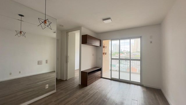 Apartamento Mobiliado com móveis e eletrodomésticos, pronto para morar, sala para dois ambientes, uma charmosa varanda com piso nivelado toda fechada com vidro e vista para o bairro. São dois dormitórios, uma suíte, todos com planejados de excelente qualidade, cozinha também com armários e roda banca com revestimento em ladrilhos, forno elétrico embutido.