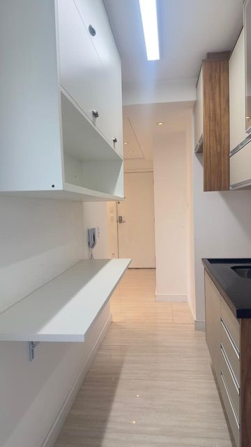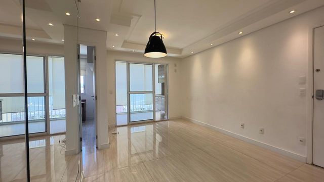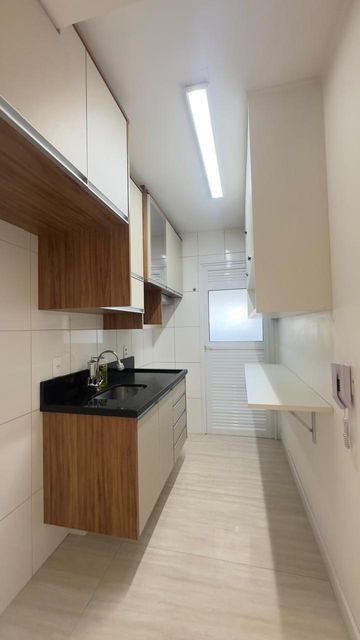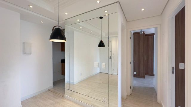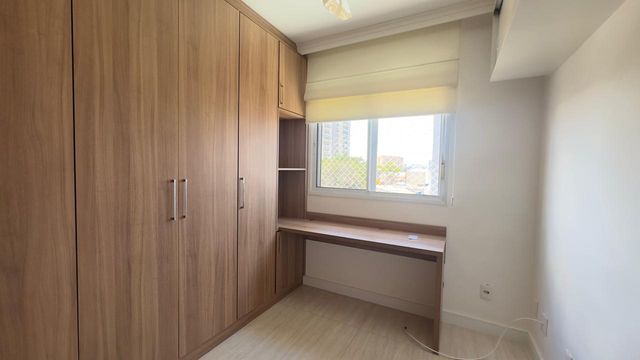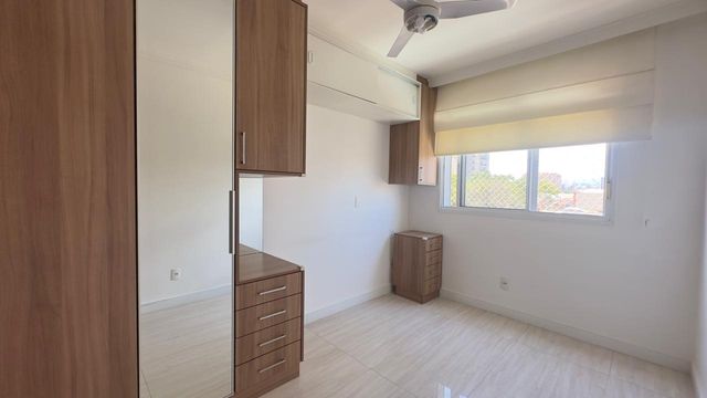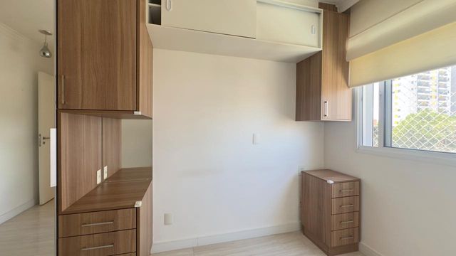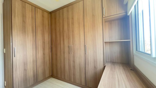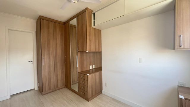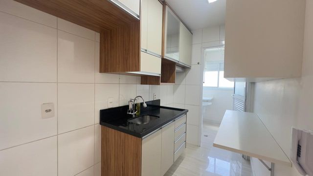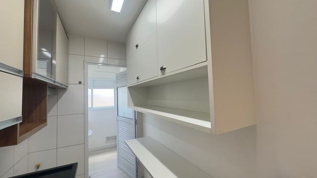 Apartamento muito bom, pintura nova, pronto para mudar, não precisa fazer nada! Sala para dois ambientes, iluminação embutida no teto, piso em porcelanato e ventilada por uma agradável varanda, que é toda fechada com vidro e conta com uma pia com gabinete e armário. São dois dormitórios, sendo um deles uma enorme suíte, ambos ótimos de armários planejados. Os banheiros da suíte e social também estão com armários e box de vidro. A cozinha tem armários na pia e aéreos e uma prática mesa retrátil, a lavanderia fica ao lado, separada por porta e oferece uma boa ventilação e iluminação à cozinha. O apartamento dispõe de 1 vaga de garagem.