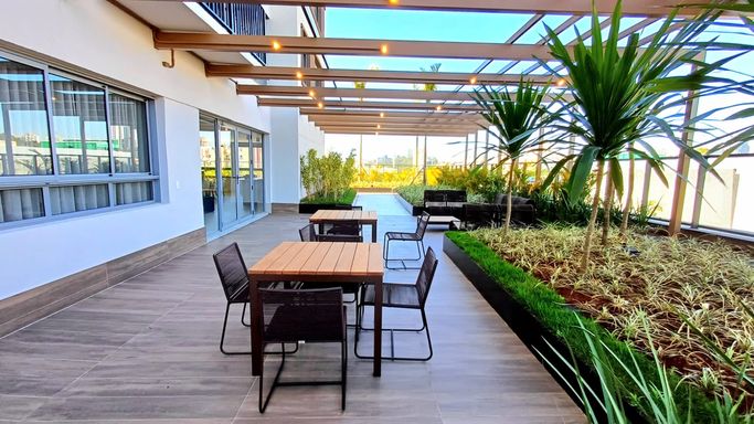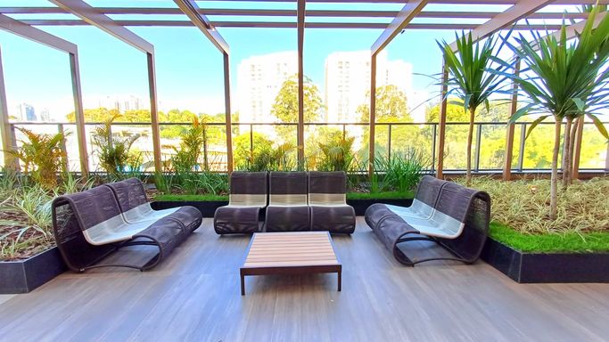 Janelas com sistema blackout, que garantem mais conforto térmico e privacidade; O imóvel tem a infraestrutura para receber ar-condicionado: E área de serviço, contem a varanda técnica.