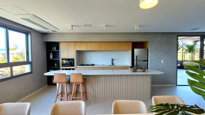 Espaço gourmet com churrasqueira, ideal para reunir amigos e família;