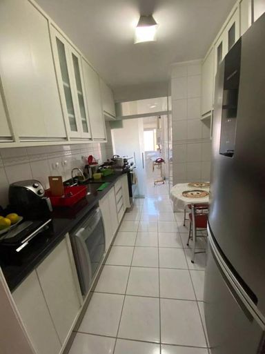Cozinha funcional, com ótimo espaço para armazenamento e circulação