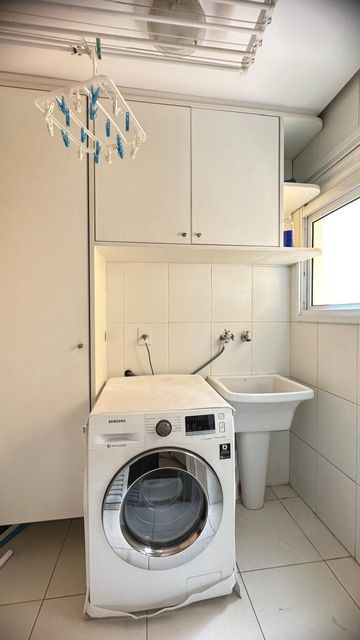 A cozinha é outro destaque: completa e equipada, com eletrodomésticos, armários planejados e despensa — perfeita para o dia a dia. A lavanderia é funcional e já conta com armários e máquina de lavar.