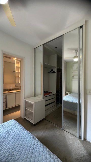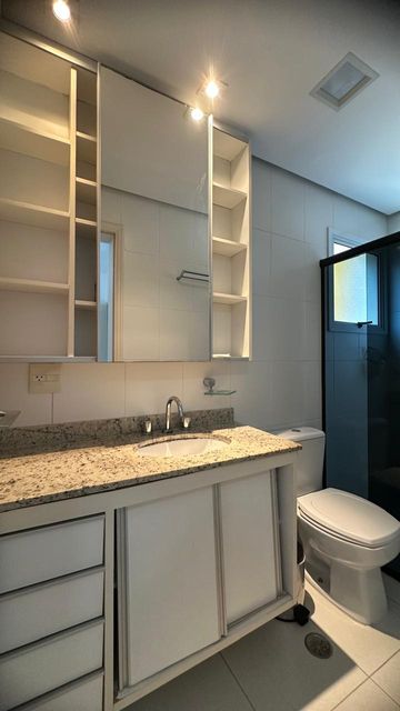 Na área íntima, conforto e praticidade: são 3 dormitórios totalmente mobiliados, incluindo uma suíte com closet e varanda privativa. Os ambientes são bem decorados, com ótimos armários e excelente aproveitamento de espaço. Os banheiros (suíte e social) são completos, com box, gabinetes e espelhos.