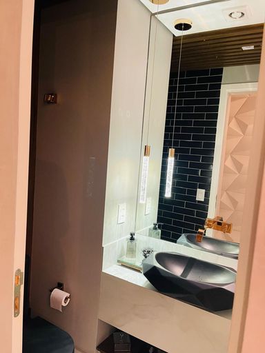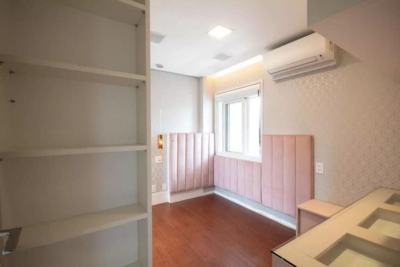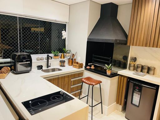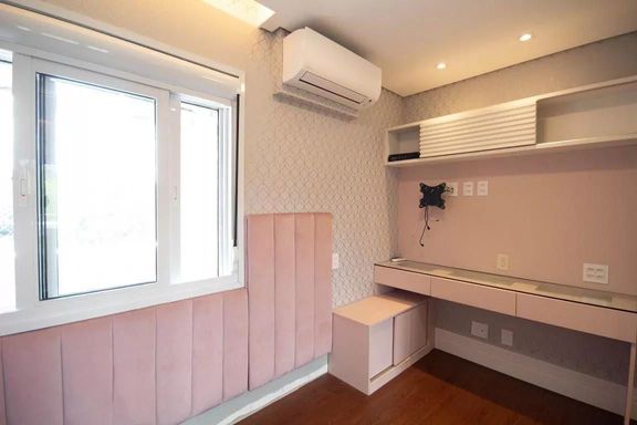 São 3 suítes confortáveis, todas com armários planejados e ar-condicionado, além de lavabo. A cozinha é funcional, equipada com móveis planejados, integrada ao restante do ambiente, e a lavanderia é bem ventilada, também com armários, garantindo organização e praticidade. O imóvel é semi-mobiliado.