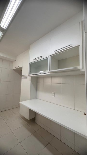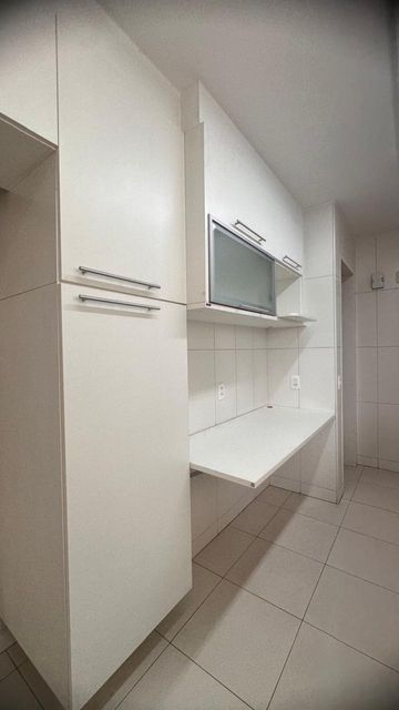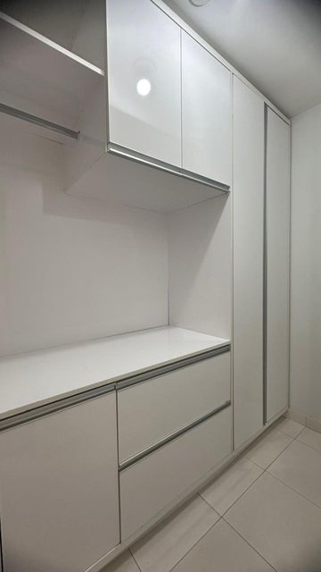 A cozinha alia funcionalidade e estética, com armários planejados, enquanto a lavanderia surpreende pelo espaço e versatilidade, incluindo ambiente reversível e banheiro de apoio.