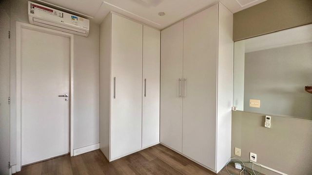Na área íntima, três suítes amplas garantem conforto e privacidade, com destaque para a suíte master, equipada com ar-condicionado. O elegante piso de madeira percorre todos os ambientes sociais e íntimos, elevando o padrão de acabamento em cada detalhe.