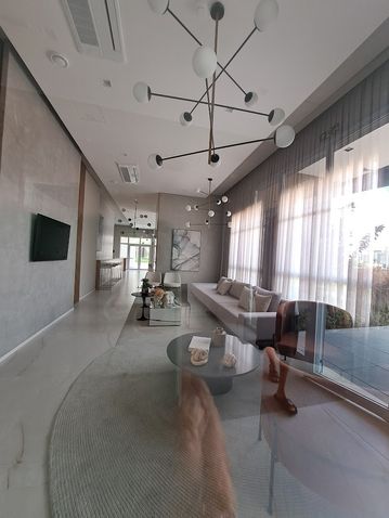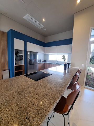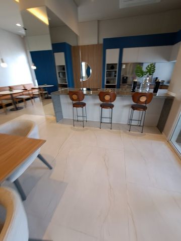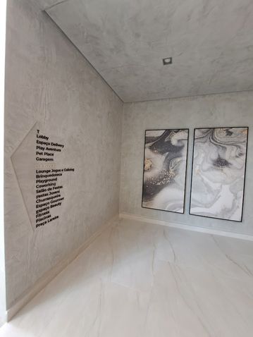 Ele esta no contrapiso, com os banheiros, cozinha e sacada entregue com o piso frio. Ele tem 2 vagas determinadas, 3 suítes, lavabo, sala ampla e varanda gourmet.