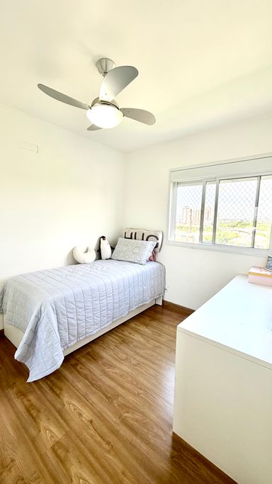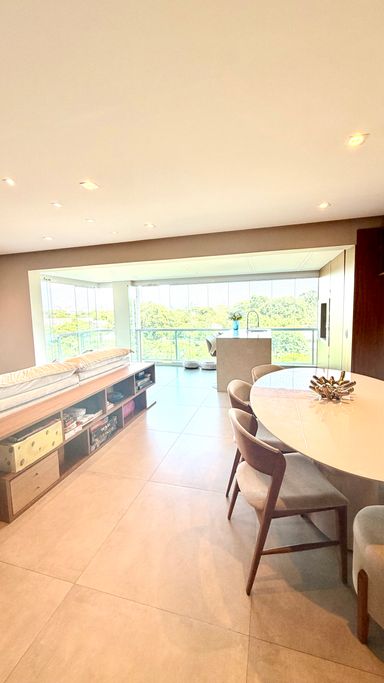 A integração entre sala e varanda amplia a sensação de espaço e transforma o ambiente social no grande protagonista do apartamento. As suítes são confortáveis, bem iluminadas e oferecem total privacidade.