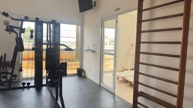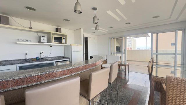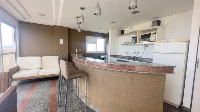 Condomínio com infraestrutura peculiar: no andar térreo, piscina adulto e infantil, sauna e academia. Na cobertura, belíssimo salão de festas com espaço gourmet, para aproveitar a bela vista, e churrasqueira com forno de pizza!