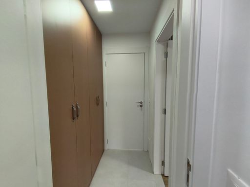 O apartamento tem sala com muita claridade, para dois ambientes, naturalmente ampliada por uma bela varanda fechada com vidro e que integra cozinha e sala, Estes ambientes são servidos por elegante lavabo. Conta com duas boas suítes com armários. Banheiros com Blindex, espelhos e armários. Cozinha com ótima luminosidade, muito boa de armários altos e baixos, ligada à lavanderia também com armário. O apartamento conta com 1 vaga coberta.
