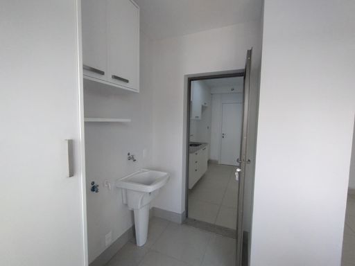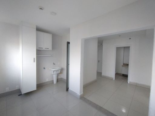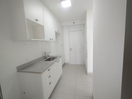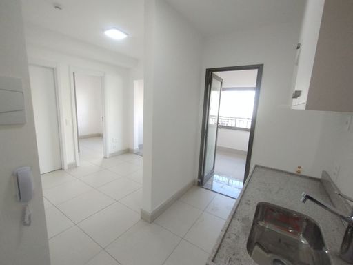 Apartamento novo para alugar, 1ª locação, em localização especial. Sala integrada com uma ótima varanda fechada em vidro e que garante luminosidade e ventilação ao ambiente. Dormitórios e banheiro com armários. A cozinha também está com ótimos armários altos e baixos, com acesso à área da lavanderia, que está integrada à varanda.