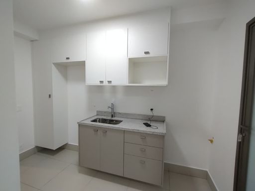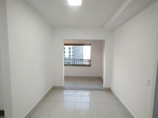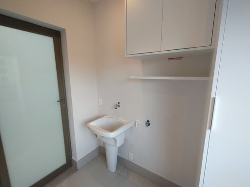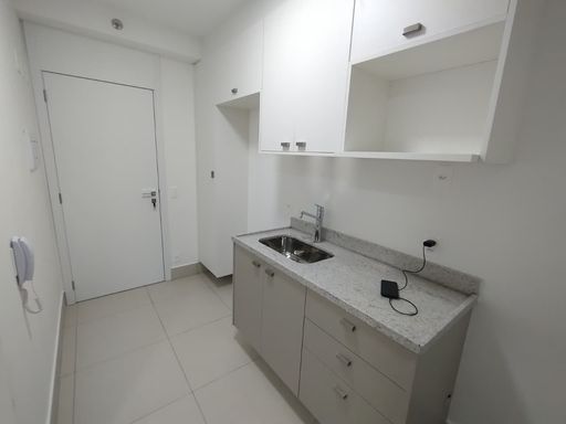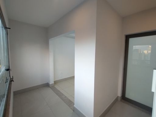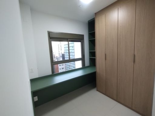 Apartamento novo para alugar, 1ª locação, em localização especial. Sala integrada com uma ótima varanda com fechamento de vidro e que garante luminosidade e ventilação ao ambiente. Dormitório e banheiro com armários mais um dormitório adaptado para escritório. A cozinha também está com ótimos armários altos e baixos, com acesso à área da lavanderia, que está integrada à varanda.