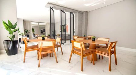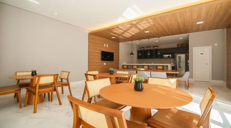 O Condomínio tem boa infraestrutura, oferecendo espaço fitness, salão de festas integrado com espaço gourmet, piscina infantil e adulta no estilo raia, quadra gramada coberta e espaço de lazer para crianças