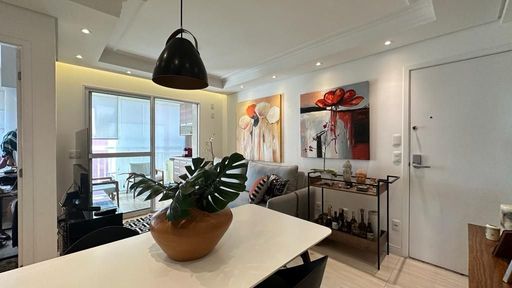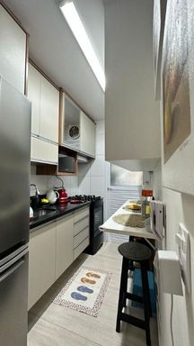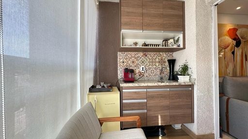 Apartamento muito bom, pintura nova, pronto para mudar, não precisa fazer nada! Sala para dois ambientes, iluminação embutida no teto, piso em porcelanato e ventilada por uma agradável varanda, que é toda fechada com vidro e conta com uma pia com gabinete e armário. São dois dormitórios, sendo um deles uma enorme suíte, ambos ótimos de armários planejados. Os banheiros da suíte e social também estão com armários e box de vidro. A cozinha tem armários na pia e aéreos e uma prática mesa retrátil, a lavanderia fica ao lado, separada por porta e oferece uma boa ventilação e iluminação à cozinha. O apartamento dispõe de 1 vaga de garagem.