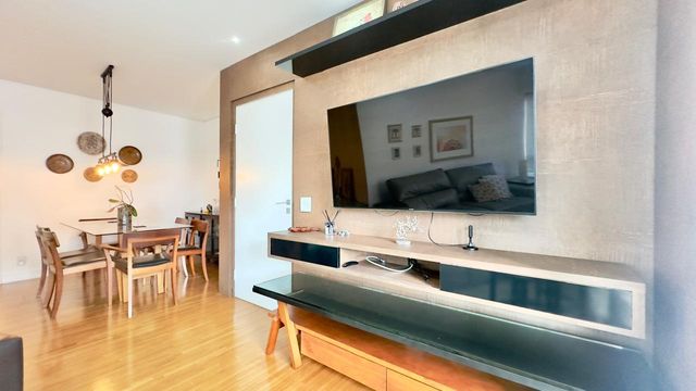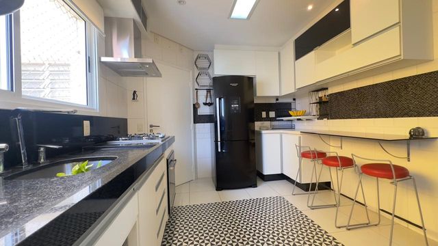 O apartamento tem sala ampla, para dois ambientes, com iluminação dirigida e teto rebaixado, atendida por um elegante lavabo e uma aconchegante varanda gourmet com churrasqueira, pia e armário. Piso das áreas sociais em madeira. Conta com 3 dormitórios, sendo uma suíte com ar-condicionado, closet, banheiro com ducha vertical e varanda privativa, mais dois dormitórios, tudo muito bem decorado e com muitos armários. Cozinha completa, totalmente equipada com eletrodomésticos, armários e com mesa de apoio para 3 lugares, ligada a lavanderia. Destaque, o apartamento conta com 3 vagas.