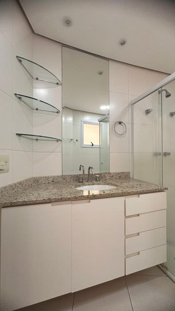 Na área íntima, o apartamento oferece três dormitórios bem distribuídos, incluindo uma suíte com closet e varanda privativa — um verdadeiro refúgio de conforto. Os demais dormitórios contam com armários planejados, assim como os banheiros, que apresentam acabamento adequado com box em vidro e espelhos.