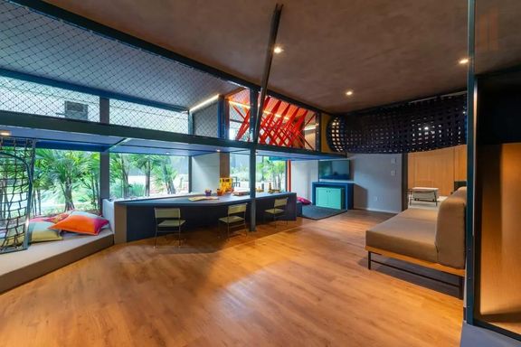 • Sala ampla para dois ambientes, integrada à cozinha americana