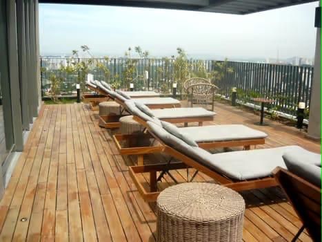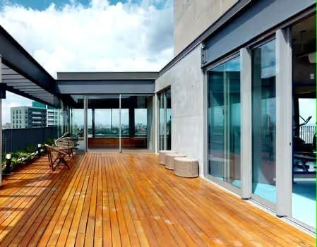 Ela envolve a sala e dois dormitórios, criando uma integração única, com excelente iluminação natural e ventilação em todos os ambientes. Totalmente equipada com fechamento em vidro e telas, é o espaço perfeito para relaxar ou receber amigos com muito conforto.