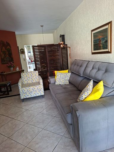 • Sala de estar ampla, integrada e acolhedora, perfeita para receber convidados.