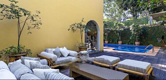 A residência apresenta arquitetura atemporal assinada por Hugo Di Pace, marcada por elegantes arcos e uma integração fluida entre os ambientes internos e o jardim. Os espaços foram concebidos para privilegiar a luz natural e a vista para o verde, proporcionando a sensação de viver em uma casa de campo, sem abrir mão da conveniência urbana.
