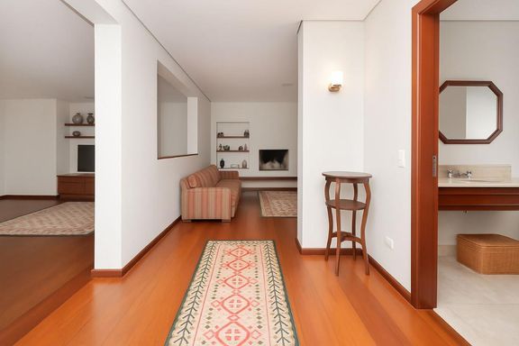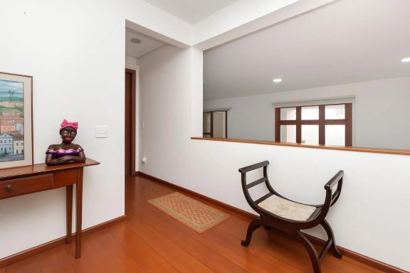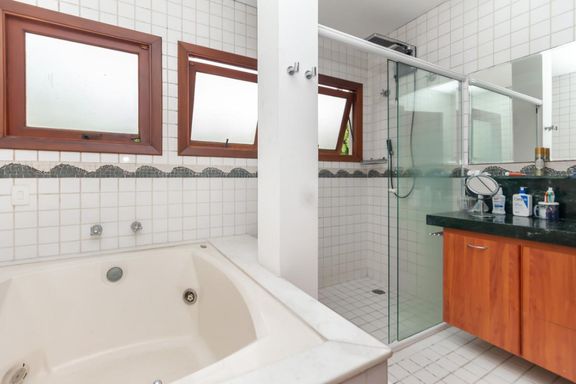Com ambientes bem distribuídos e ótima iluminação natural, o imóvel conta com 4 confortáveis suítes, sala com lareira, sala de jantar, copa, além de um escritório com piso em madeira, ideal para quem precisa de um espaço de home office. O destaque fica por conta do lindo jardim, cercado por muitas plantas, orquidário e uma deliciosa piscina climatizada com área gourmet e churrasqueira, perfeita para momentos de lazer com amigos e família.