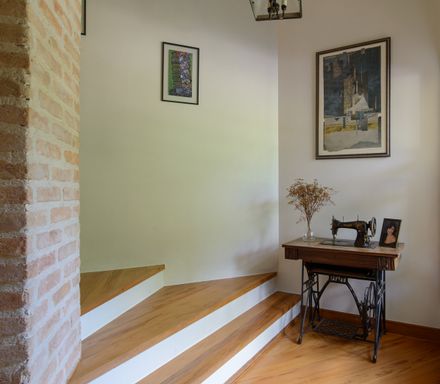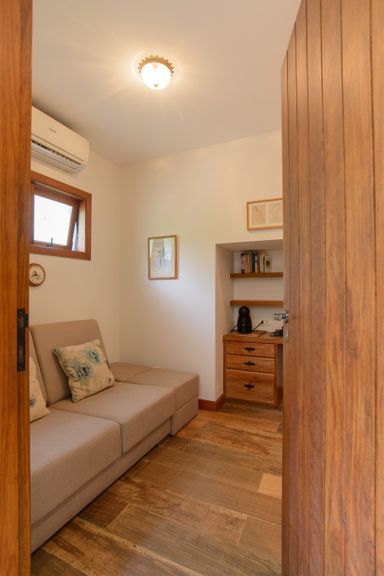 O projeto inteligente aproveita a topografia natural do terreno para criar uma residência bonita e confortável, com ambientes bem definidos que permitem a realização simultânea de diferentes atividades — como assistir TV, ouvir música, ler, trabalhar no escritório ou atender no consultório — com mínima interferência entre elas e sem impacto na rotina familiar.