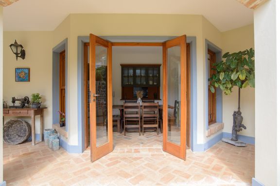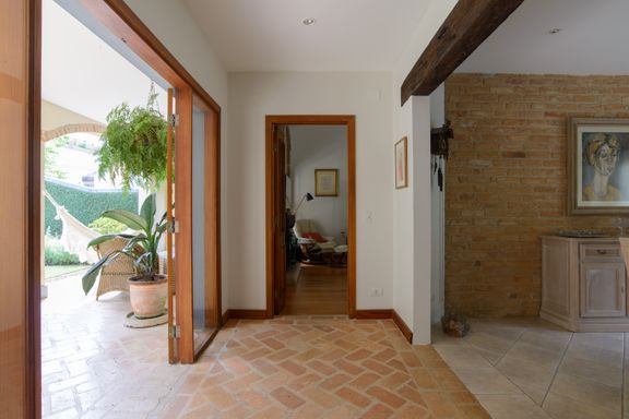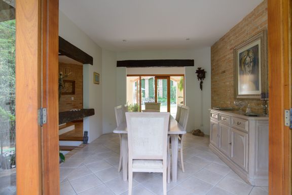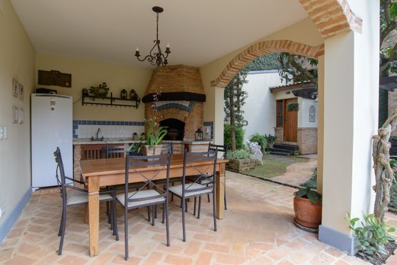 Belíssima casa em estilo toscano, com projeto atemporal, localizada em ponto privilegiado, sem vizinho em frente e com vista permanente para o parque ecológico de preservação. O projeto, desenvolvido por arquiteto britânico, une aconchego, beleza e praticidade, integrando a casa à natureza por meio de materiais e cores naturais — um verdadeiro refúgio para quem busca qualidade de vida.