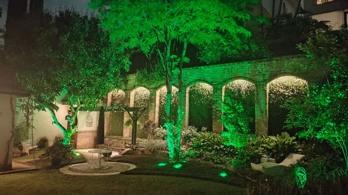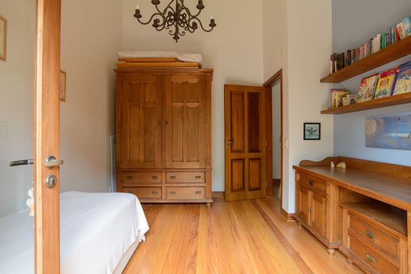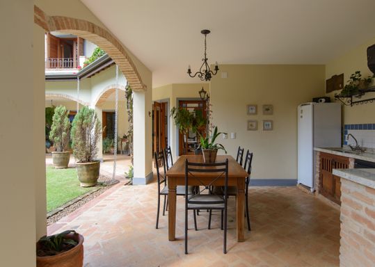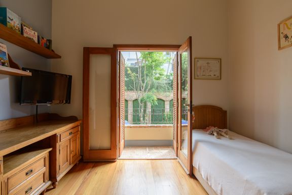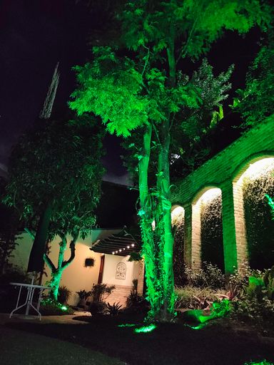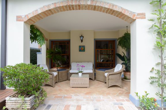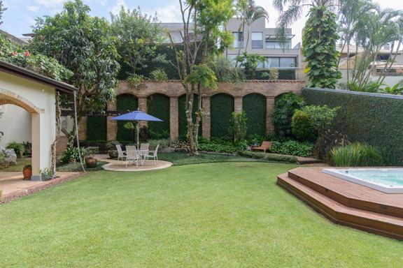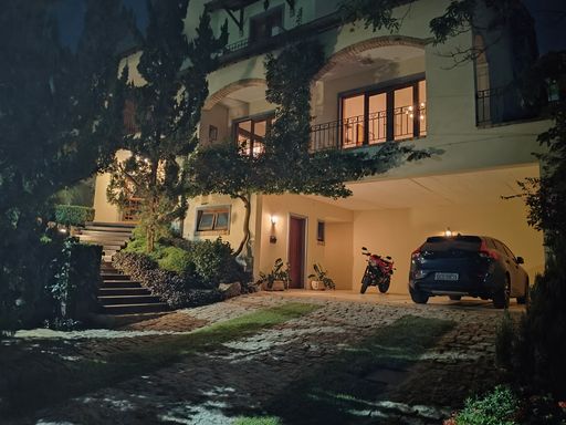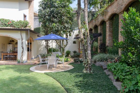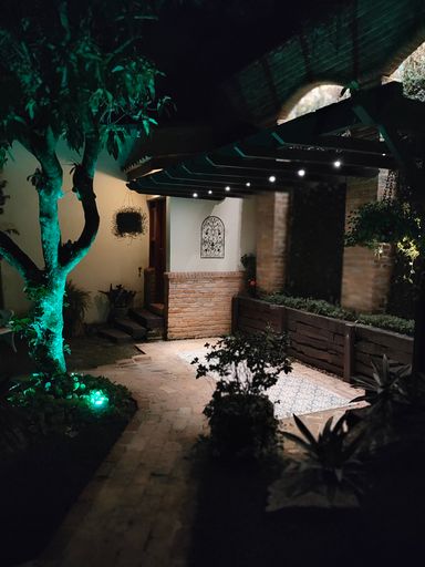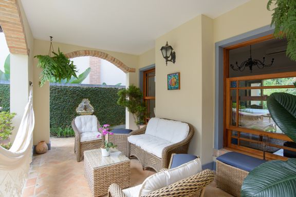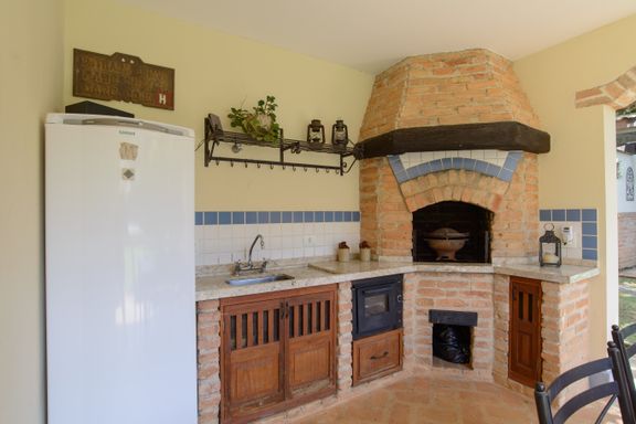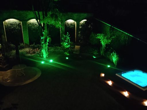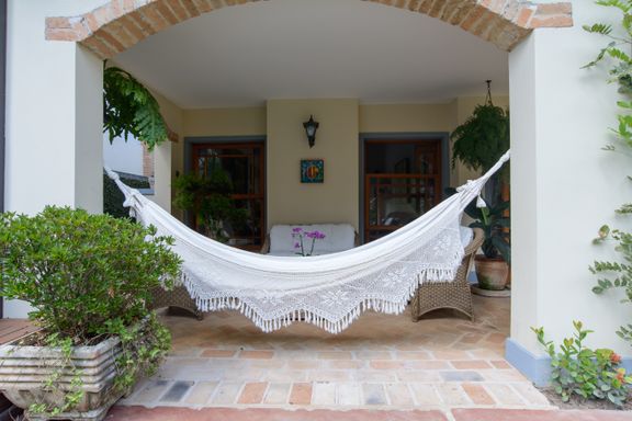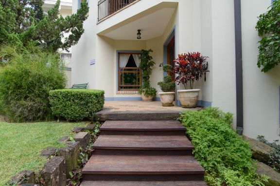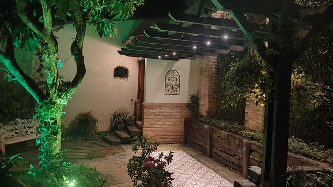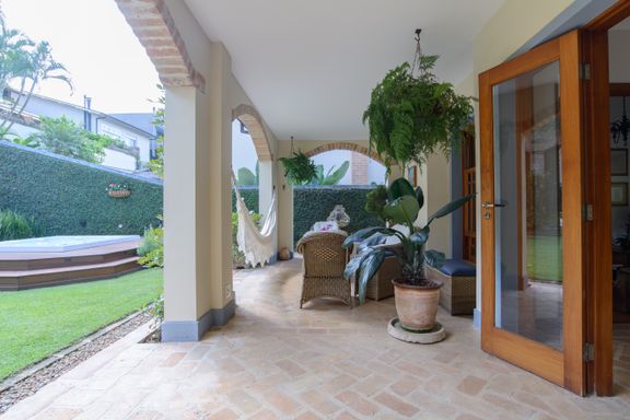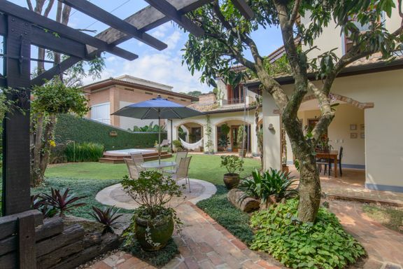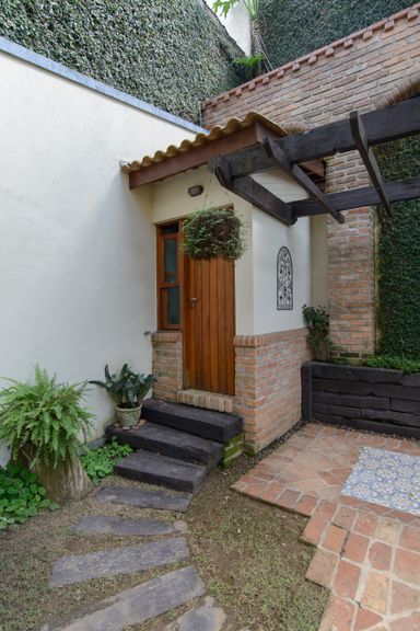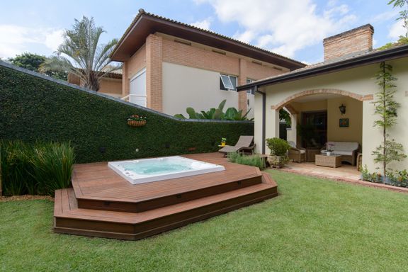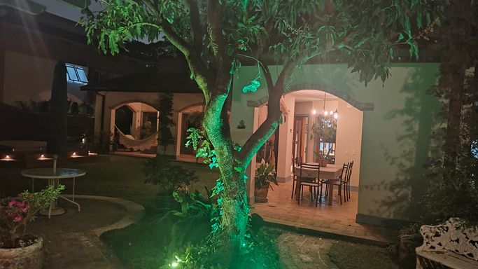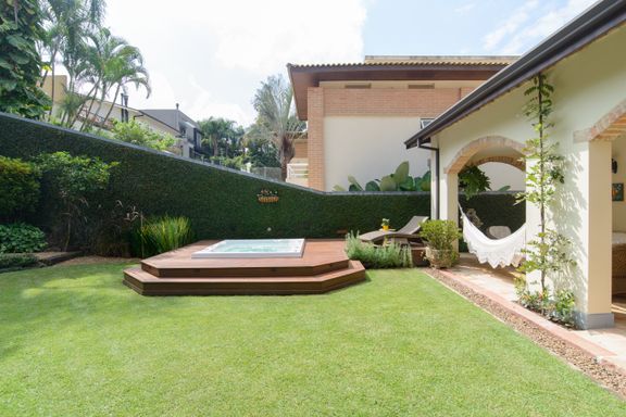 O quintal é o grande destaque da propriedade: um espaço encantador que surpreende todos os visitantes. Conta com ampla varanda, belo gramado, jacuzzi, paredes cobertas por hera e árvores adornadas com orquídeas.