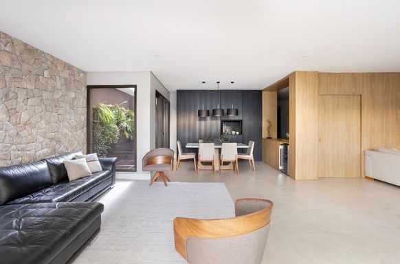 Distribuída em três pavimentos conectados por elevador, oferece praticidade, conforto e acessibilidade em todos os detalhes. No primeiro piso, o living amplo e iluminado naturalmente se integra à cozinha e ao jardim, criando um espaço acolhedor e sofisticado — ideal para receber e viver bons momentos em família.