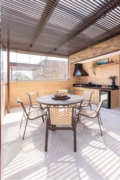 No terceiro piso, o lazer é o grande destaque: piscina privativa, espaço gourmet com churrasqueira e sauna, formando um ambiente exclusivo, perfeito para relaxar e receber convidados com estilo.