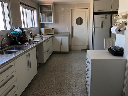 • Cozinha gourmet gigante, totalmente equipada, com armários planejados, cuba dupla e espaço para geladeira side-by-side + freezer
