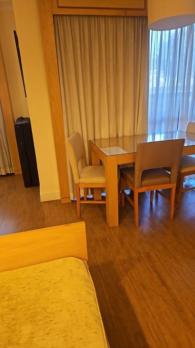 A unidade inclui direito a uma vaga de garagem, encontra-se mobiliada, com cofre, e equipada com eletrodomésticos e utensílios necessários. O hóspede receberá a unidade sem custos adicionais referentes a luz, água, gás, arrumação diária de até 20 minutos, manutenção dos aparelhos elétricos e hidráulicos presentes na unidade (já incluída no condomínio).