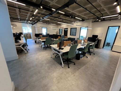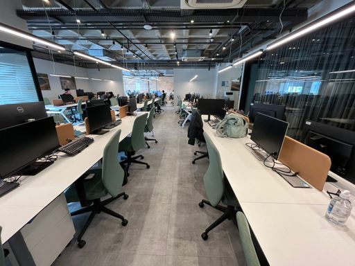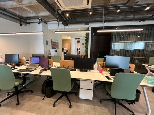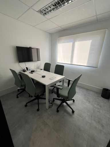 As mesas da sala de reunião não vão ficar. Só as estações de trabalhos compartilhadas e o restante dos imóveis.