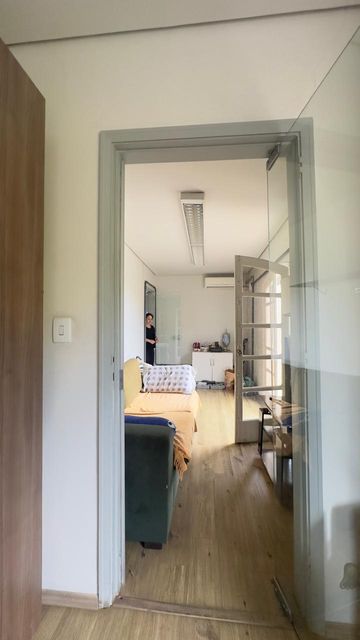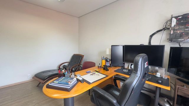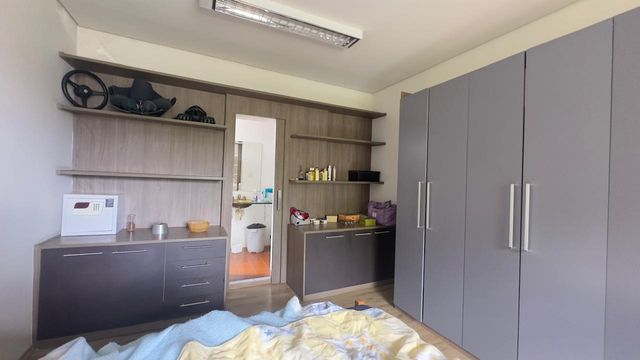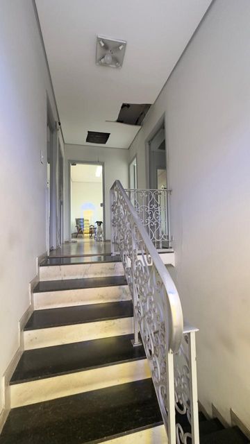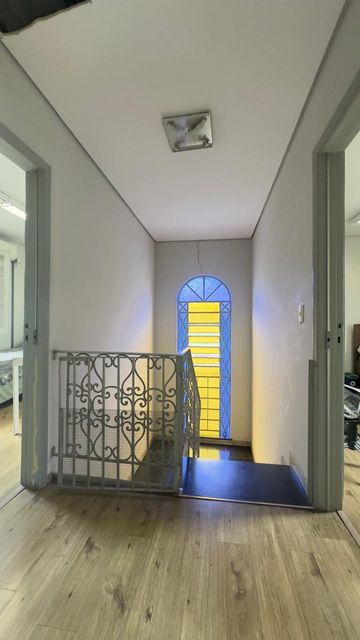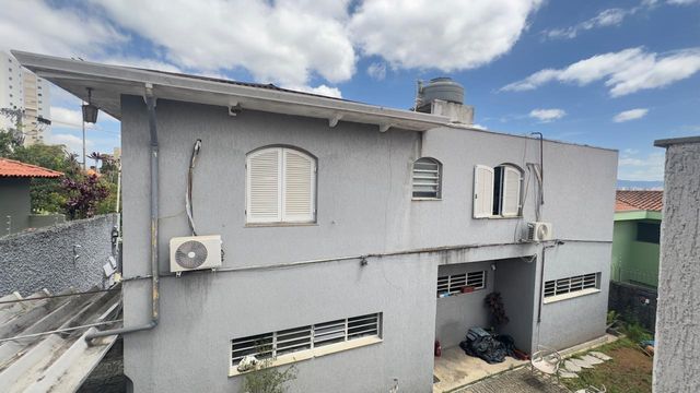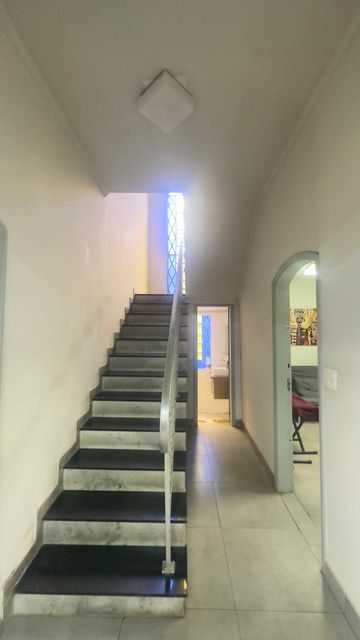 No piso superior temos uma suíte principal, em 2 ambientes, e balcão, além de espaço livre comporta uma sala de TV. Temos também mais três dormitórios, servidos por banheiro social. A suíte e dormitórios são atendidos por ar-condicionado. No piso inferior temos um elegante hall de entrada com lavabo, uma sala ampla, com janelas grandes que garantem luminosidade e ventilação. Ao lado temos uma sala de jantar, com piso de madeira em nível elevado, que se conecta com uma ampla cozinha completa e a uma sala de jogos e mais um lavabo. A cozinha dá acesso a um espaço aberto onde encontramos uma grande edícula, multiuso, um quintal ventilado e acesso a garagem fechada e local para churrasqueira acima da garagem.