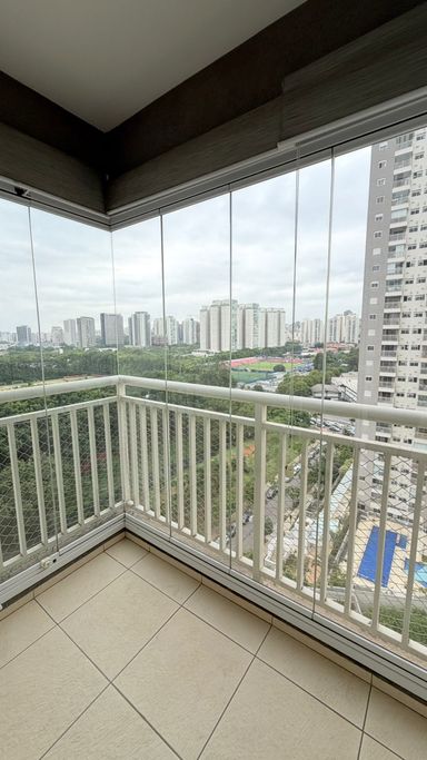 • As imagens indicam que o apartamento possui varanda ou janelas com vista aberta para a cidade.