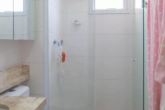 • Banheiros com revestimento claro.