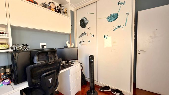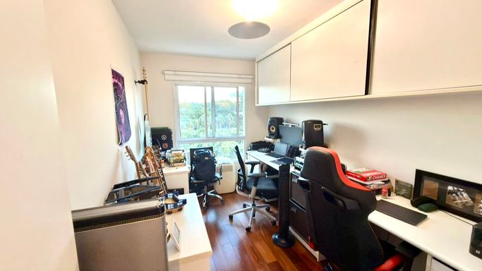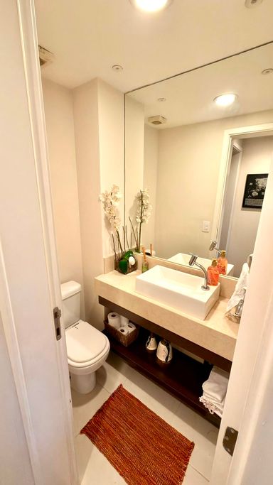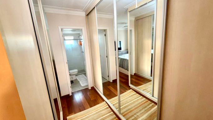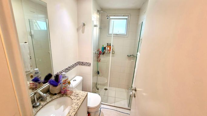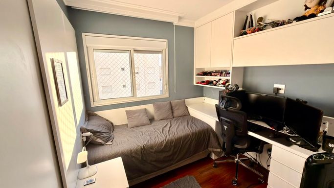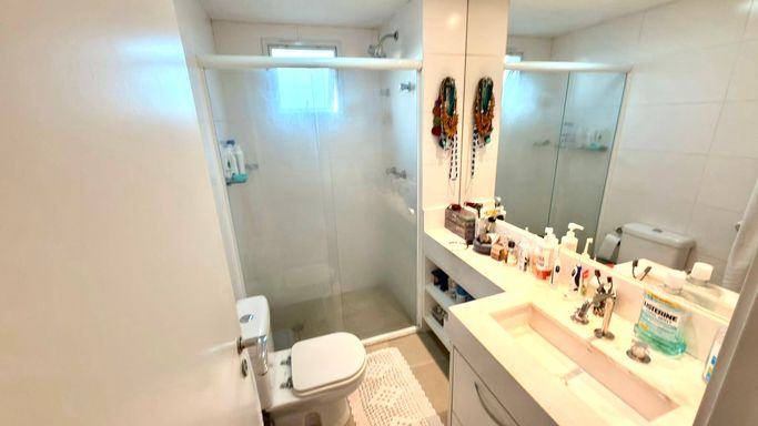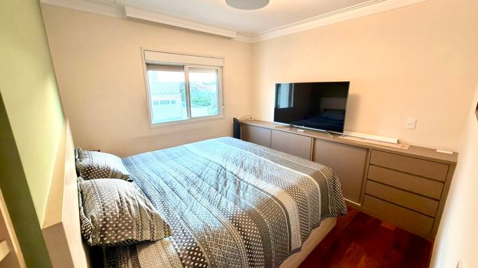 A integração entre sala e varanda amplia a sensação de espaço e transforma o ambiente social no grande protagonista do apartamento. As suítes são confortáveis, bem iluminadas e oferecem total privacidade.