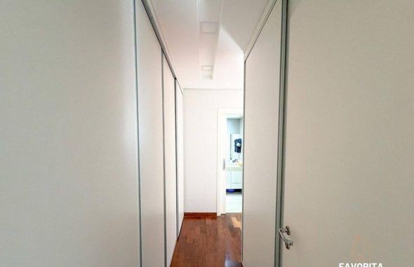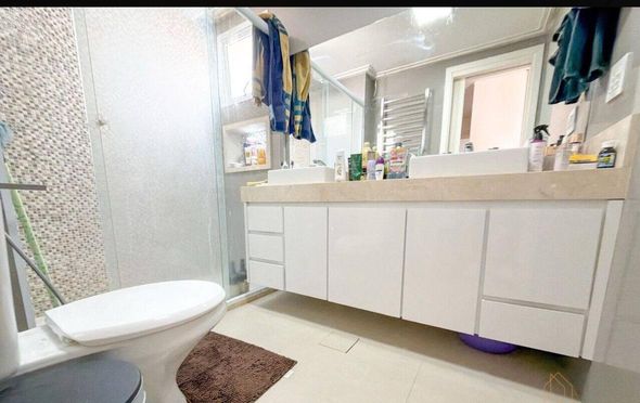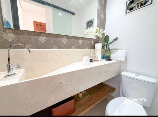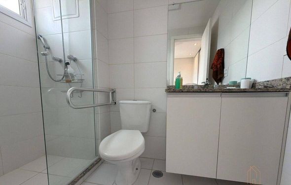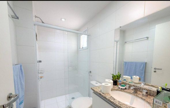 Os espaços internos são bem distribuídos, com áreas de circulação amplas e paredes em tons neutros, o que reforça a sensação de amplitude e leveza. Os banheiros seguem a mesma linha contemporânea, com revestimentos claros, louças modernas e acabamento refinado.