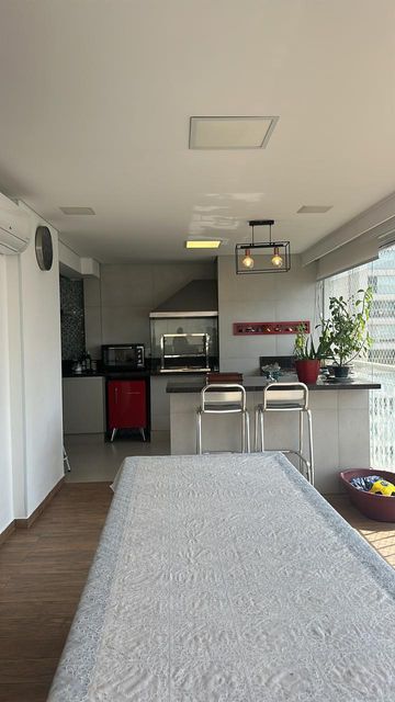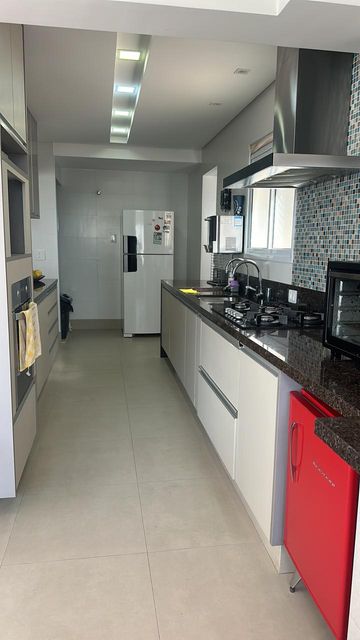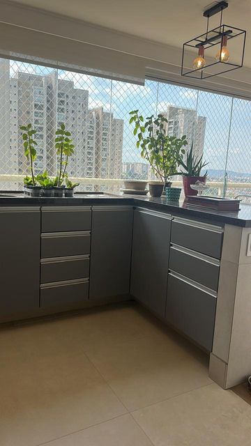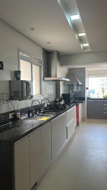 Imóvel de padrão moderno, com ambientes integrados e ótima entrada de luz natural. A cozinha apresenta design funcional, com armários planejados, bancadas em materiais claros e acabamento sofisticado, transmitindo sensação de organização e praticidade.