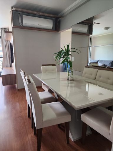 Totalmente decorado, está pronto para morar, proporcionando comodidade imediata sem necessidade de reformas. Conta ainda com varanda, armários planejados nos quartos e na cozinha, ar-condicionado e área de serviço, garantindo um dia a dia mais organizado e confortável.