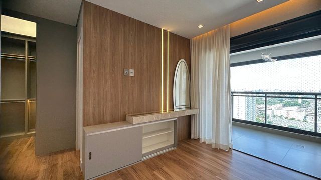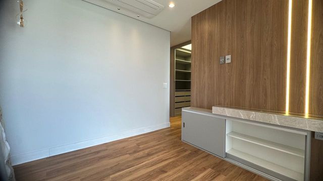 Na área íntima, a suíte master é um verdadeiro refúgio. Um espaço pensado para desacelerar, com closet generoso e uma sala de banho equipada com hidromassagem e cromoterapia, criando um ambiente de relaxamento e bem-estar. As demais suítes seguem o mesmo padrão de conforto, com excelente marcenaria e acabamentos elegantes.