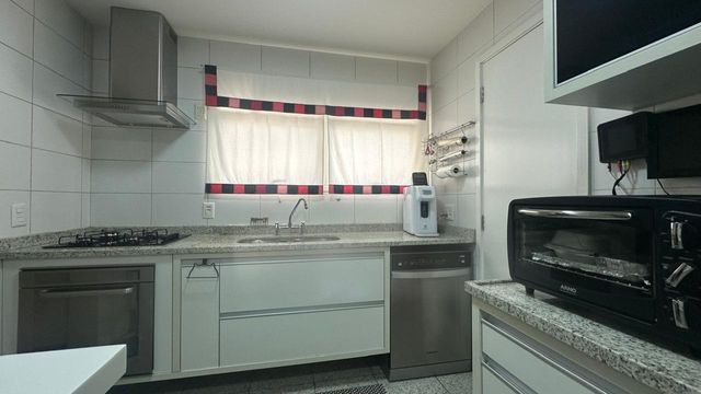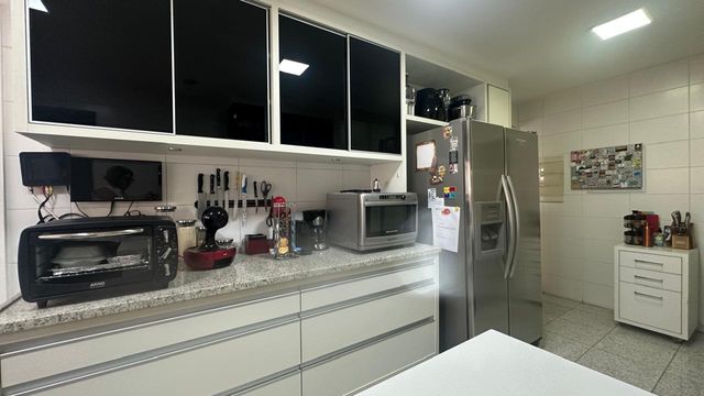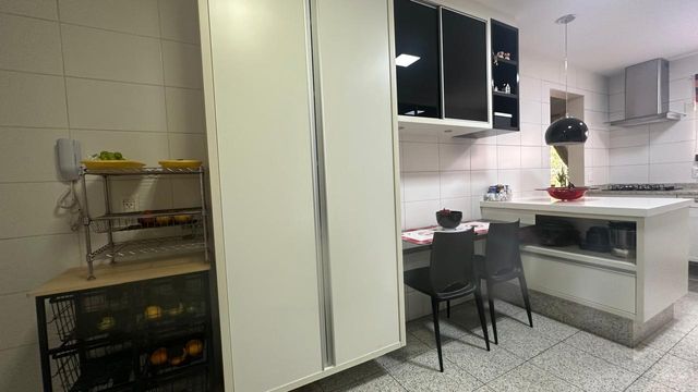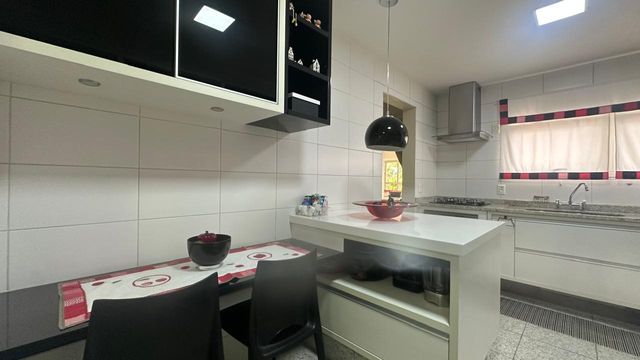 Copa e cozinha espaçosas, complementada por espaço gourmet, acabamento em granito, tudo planejado para o dia a dia da família, além de área de serviço completa com dependências.