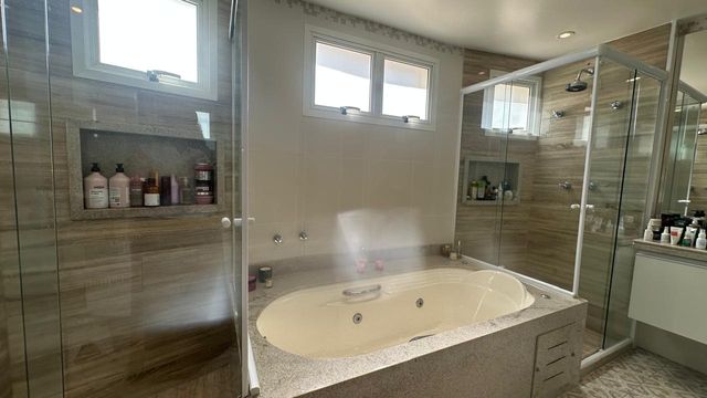 São 4 suítes amplas, todas com ótima iluminação natural, destaque para a suíte master com espaço generoso para closet e banheiro sr. e sra com hidromassagem.