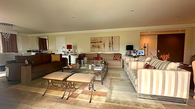 Área social imponente, perfeita para receber: living com múltiplos ambientes integrados à varanda, proporcionando sensação de casa suspensa.